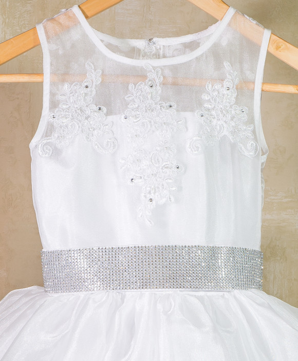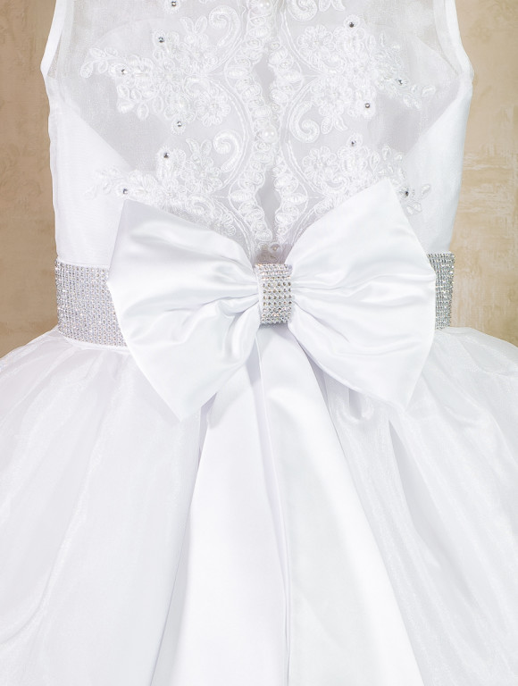 VESTIDO DAMA CINTO EM STRASS ORGANZA BARRADO BICO COSTAS BICO COM LAÇO