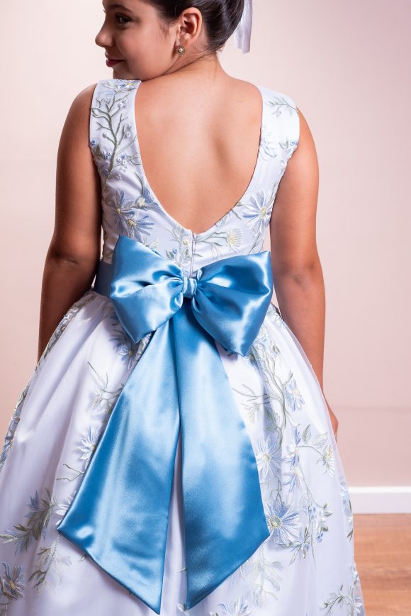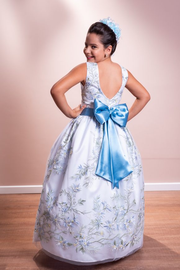 VESTIDO DE DAMA TODO TRABALHADO EM TULE BORDADO