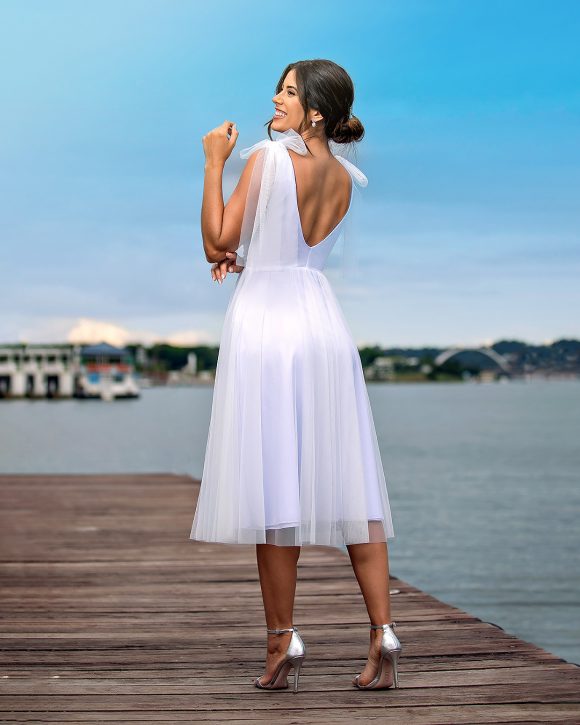 VESTIDO MINI NOIVA BRANCO CURTO DE TULE MANGA LENÇO TAMANHO: P