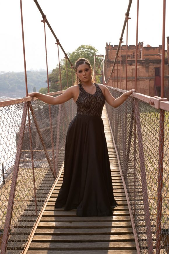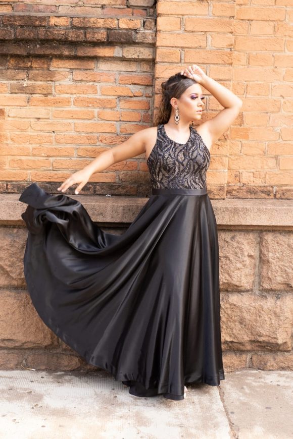 VESTIDO PRETO COM PAETES E DETALHES DOURADO SAIA CETIM