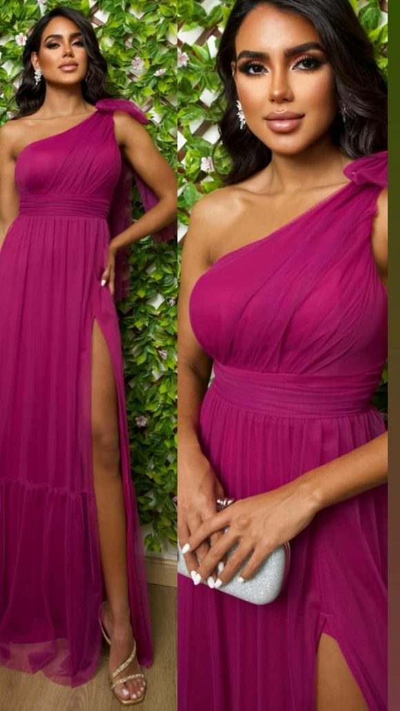 VESTIDO TULE OMBRO SO , AMARRAÇÃO OMBRO