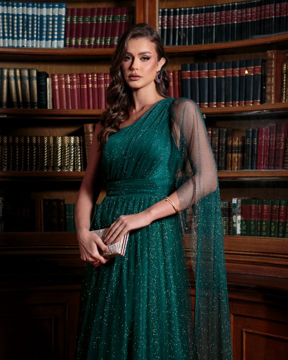 VESTIDO LUREX VERDE ,UMA MANGA LENÇO DISPONIVEL NO TAMANHO M